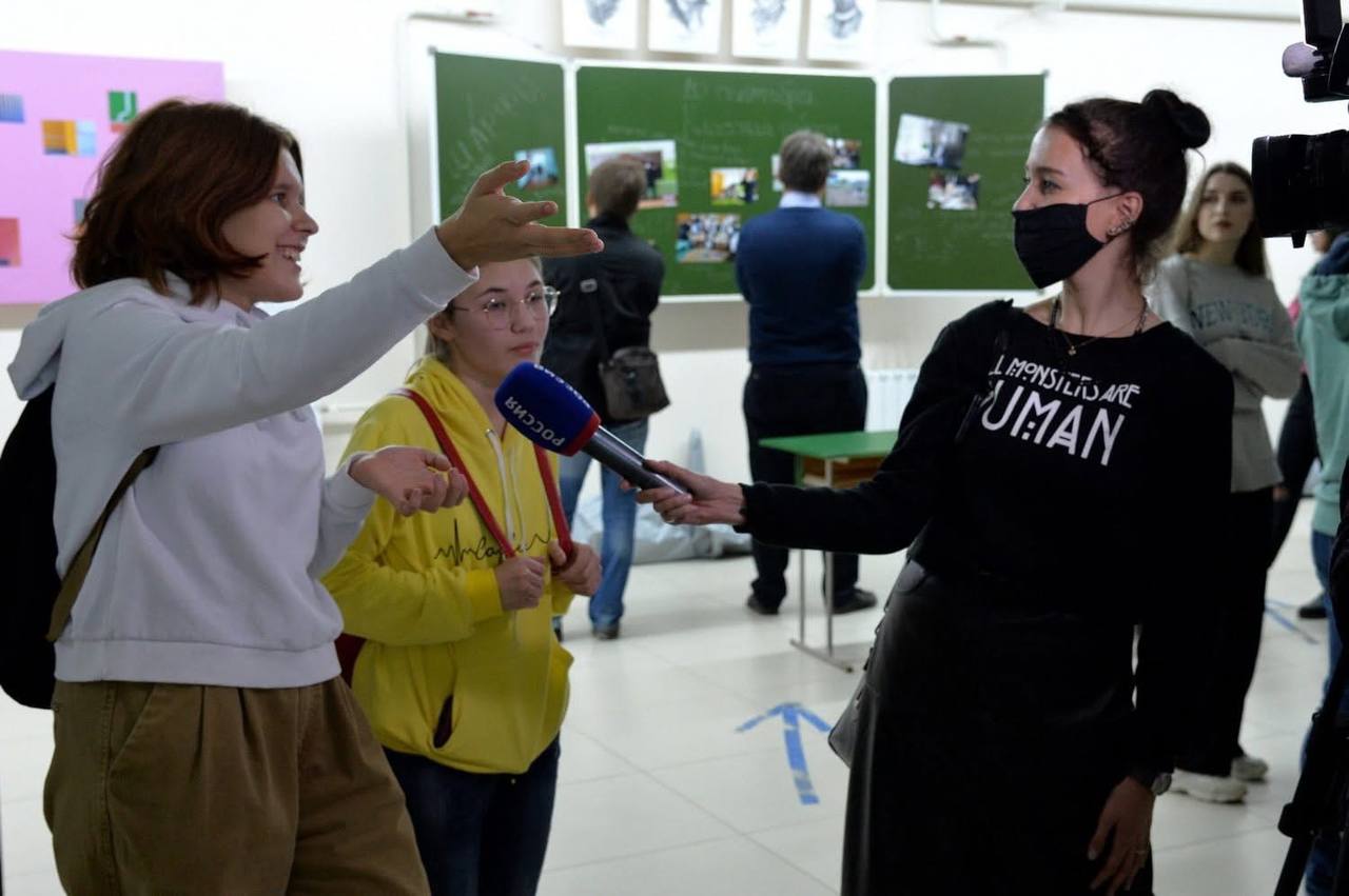 Алексей Клюкин дает интервью местному телевидению